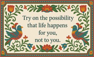 Often, people think life happens TO you. Try on the possibility that life happens FOR you. So, the assignment is to create life rather than cope with circumstances. To be clear, this does not mean you have control and that you get to decide every outcome for you and others. You have no control over circumstances. You never have and never will.