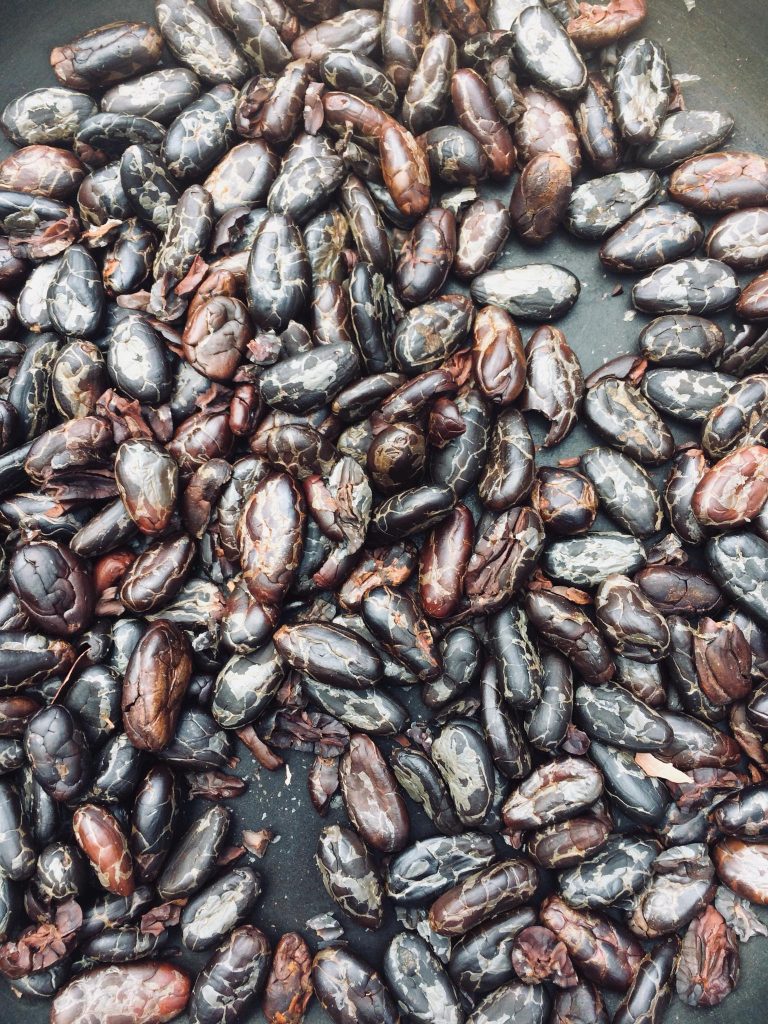 In the kitchen, the process unfolds quietly and deliberately. Whole ingredients are presented in their natural state. Aromas rise as fire and patience begin their work. The sound of stone against stone marks the rhythm of the space, grounding the moment. Chocolate appears as an essential, subtle presence—deepening, rounding, and holding the flavors together.